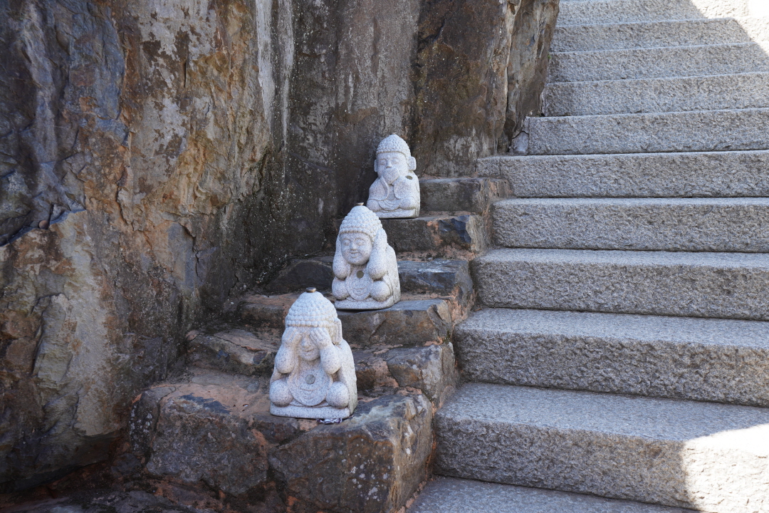 눈, 귀, 입을 가리고 있는 불상?과 염주?를 목에 건 거북이를 볼 수 있었어요.