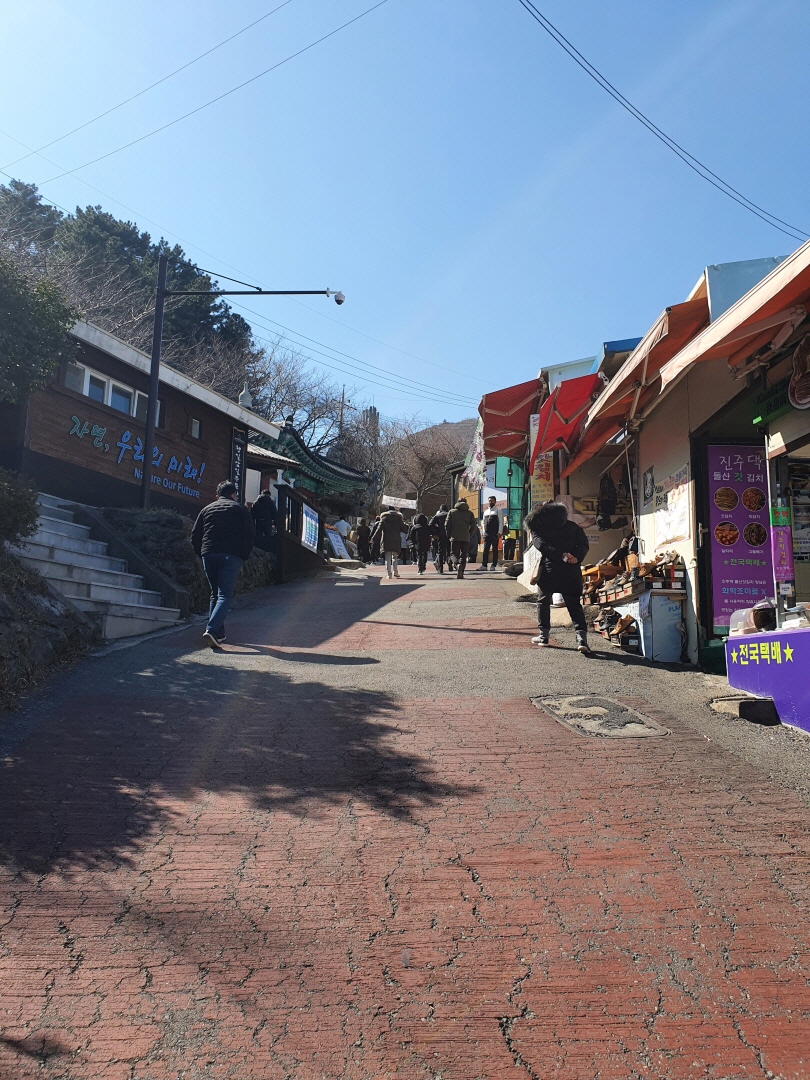 향일암으로 오르는 길 중 계단길과 평길이 있는데 그렇게 높지 않았기 때문에 더 빠른 계단길을 선택!!