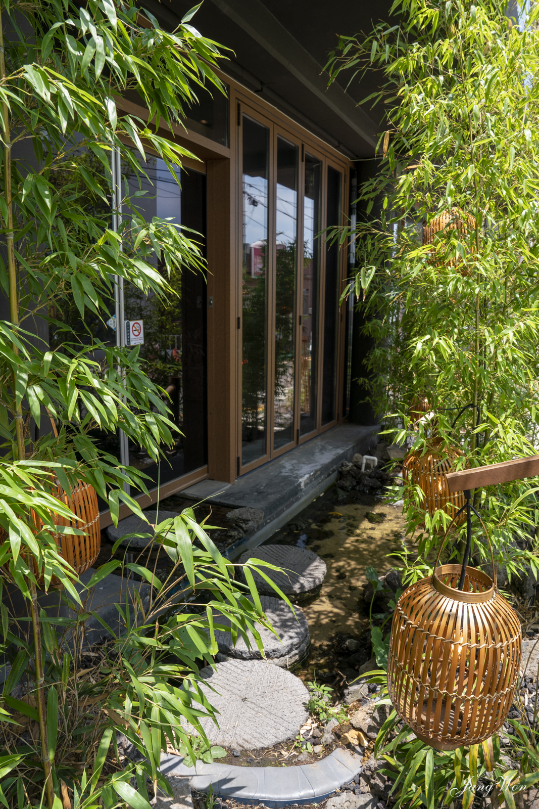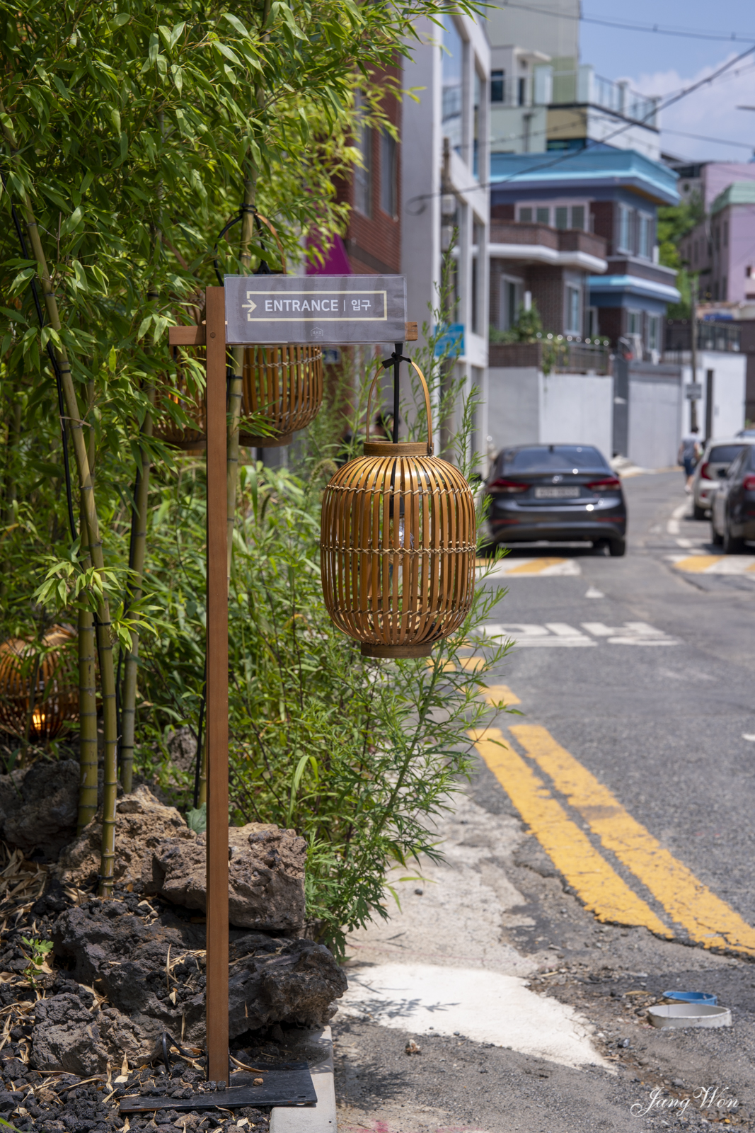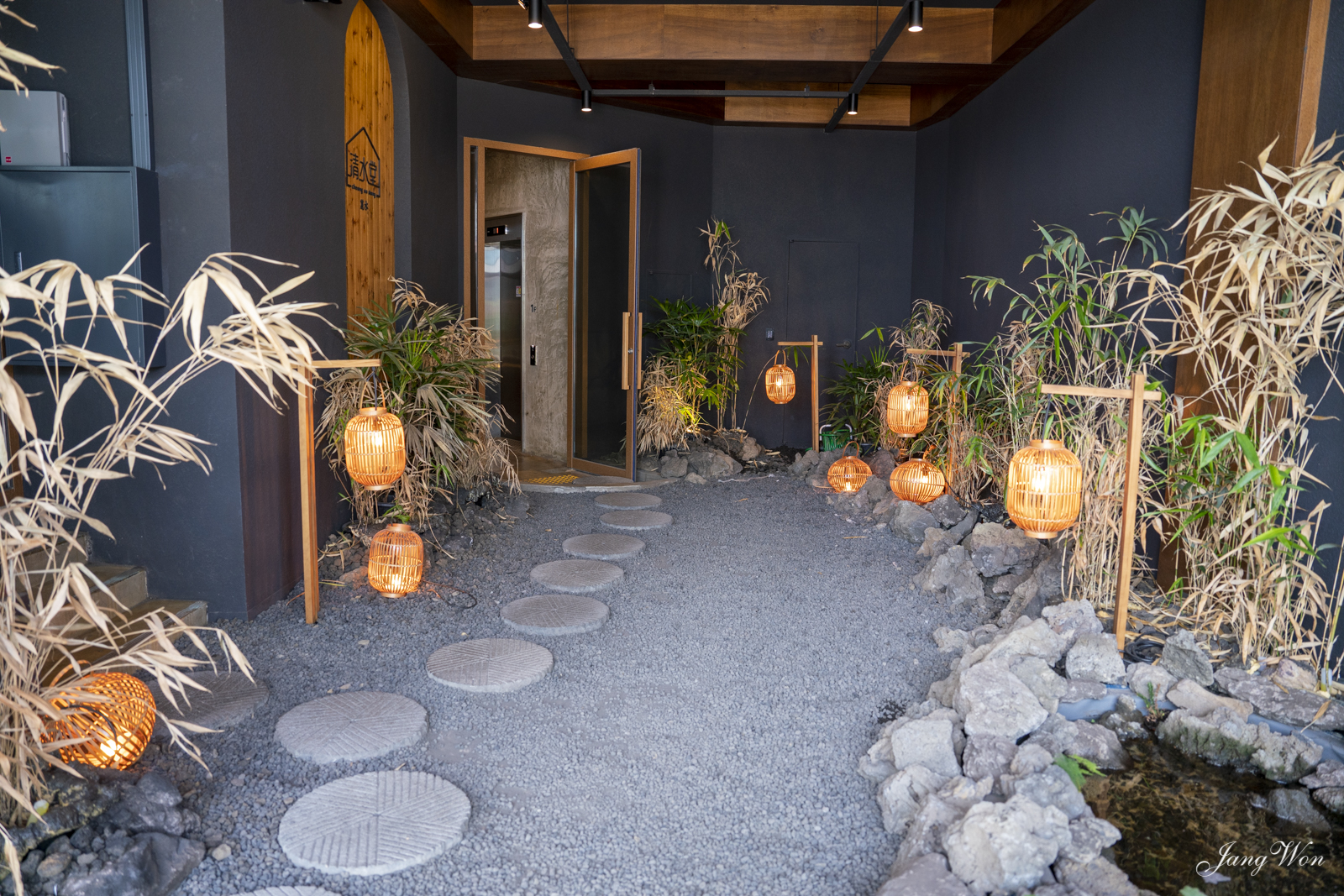 입구에 막 들어서면 양 옆으로 대나무들이 서있고 아래에는 맷돌? 같은 징검다리가 놓여 있어요.