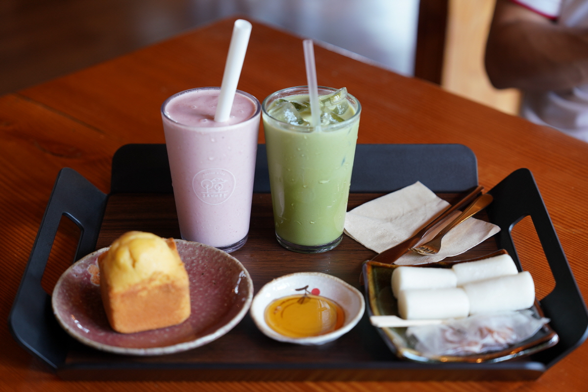 여기 구르미머무는 카페는 서비스로 가래떡을 구워주는데 이 떡이 정말 맛있어요. ㅎㅎㅎ