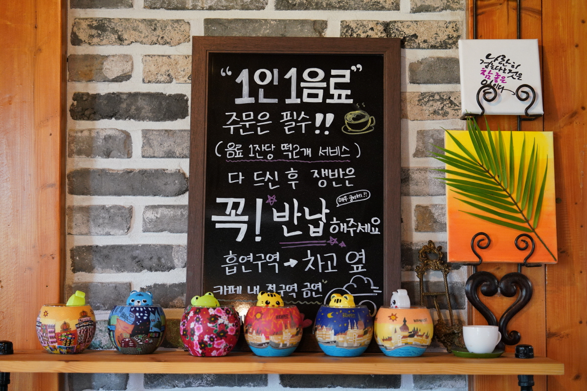 카페는 1인 1음료 주문이 원칙이고, 반려동물은 입장이 금지되어 있습니다.