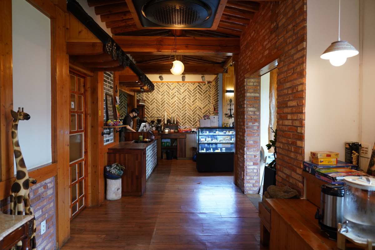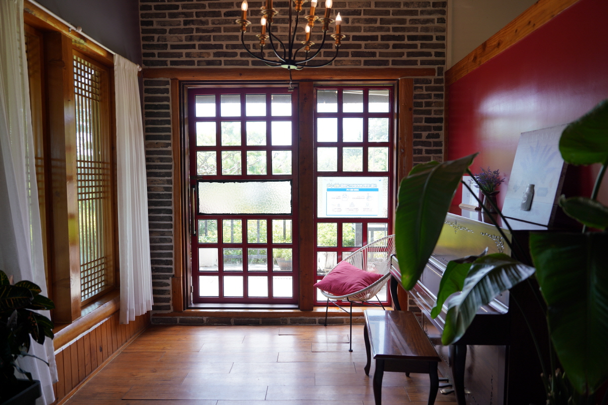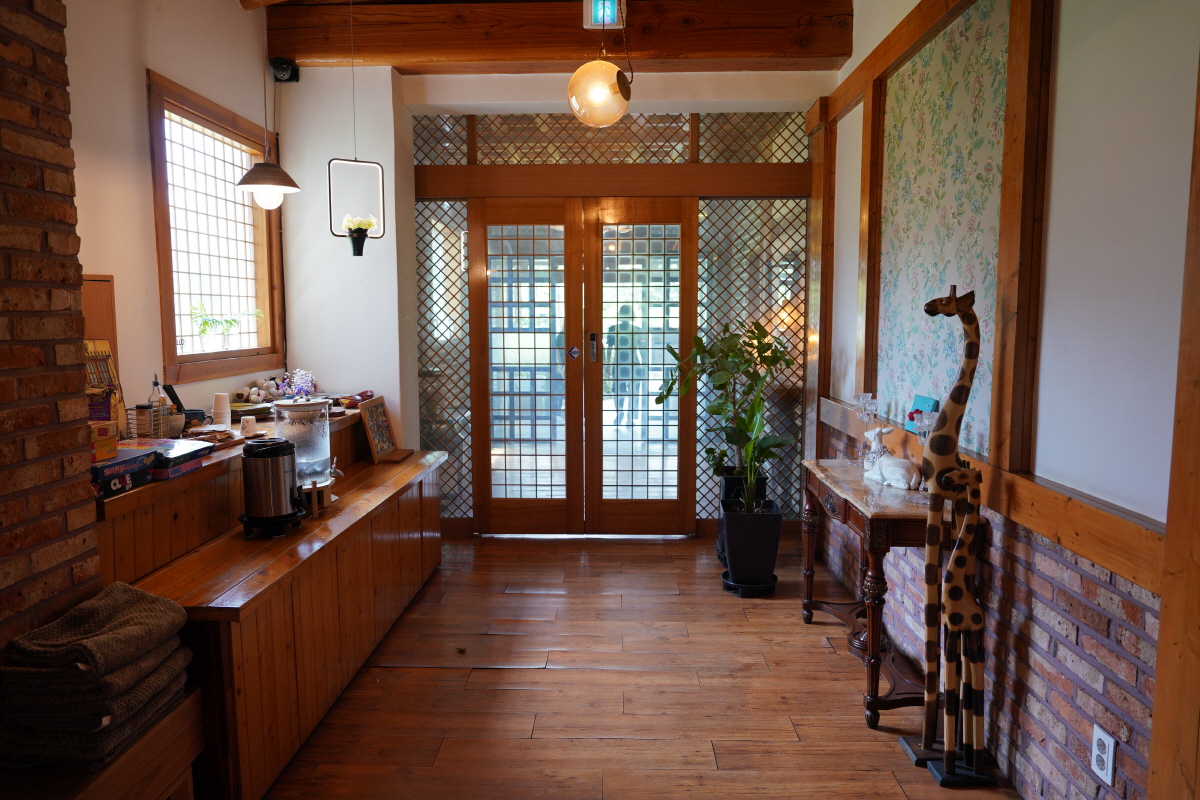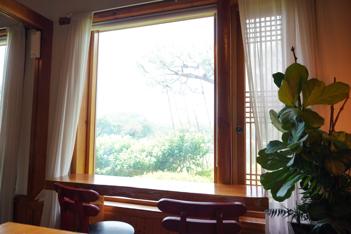 인테리어를 보면 골격은 한옥식으로, 커튼이나 조명은 서양식 분위기가 나서 퓨전 느낌이 들었어요.