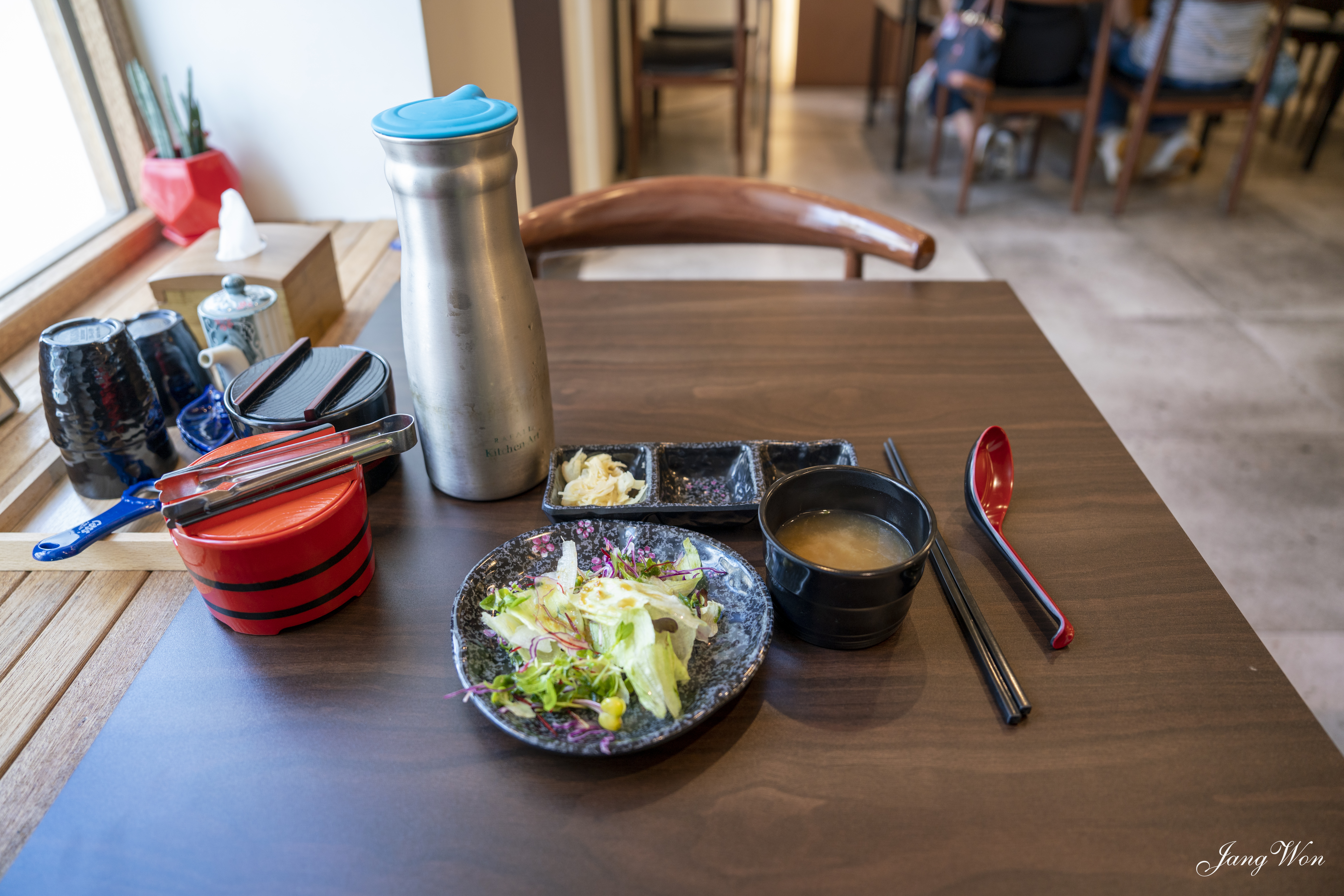 세팅해주시는 밑반찬은 생강이랑 샐러드, 미소된장국이 있어요.
